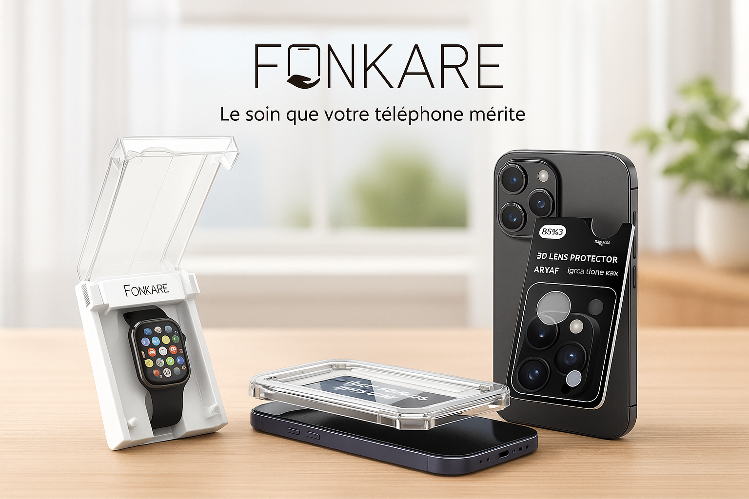 Chez Fonkare, nous sommes passionnés par l’innovation et la qualité. Notre marque est née d’un constat simple : nos téléphones, montres et objets connectés nous accompagnent au quotidien, mais leur protection est souvent négligée. Nous avons donc décidé de créer des produits qui allient performance, esthétique et durabilité, pour offrir à chaque appareil le soin qu’il mérite. Basés sur un savoir-faire technologique pointu, nos accessoires sont conçus avec une attention particulière aux détails, dans un esprit haut de gamme inspiré des plus grandes marques.